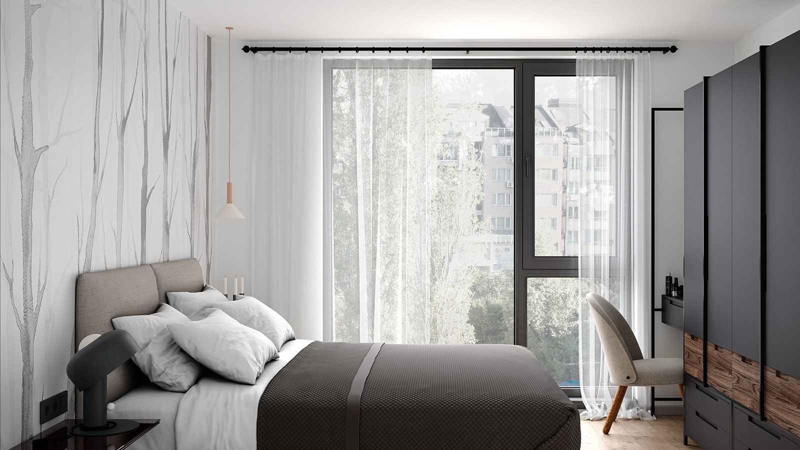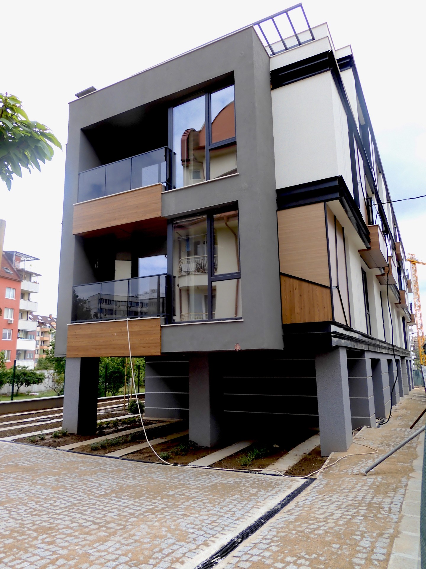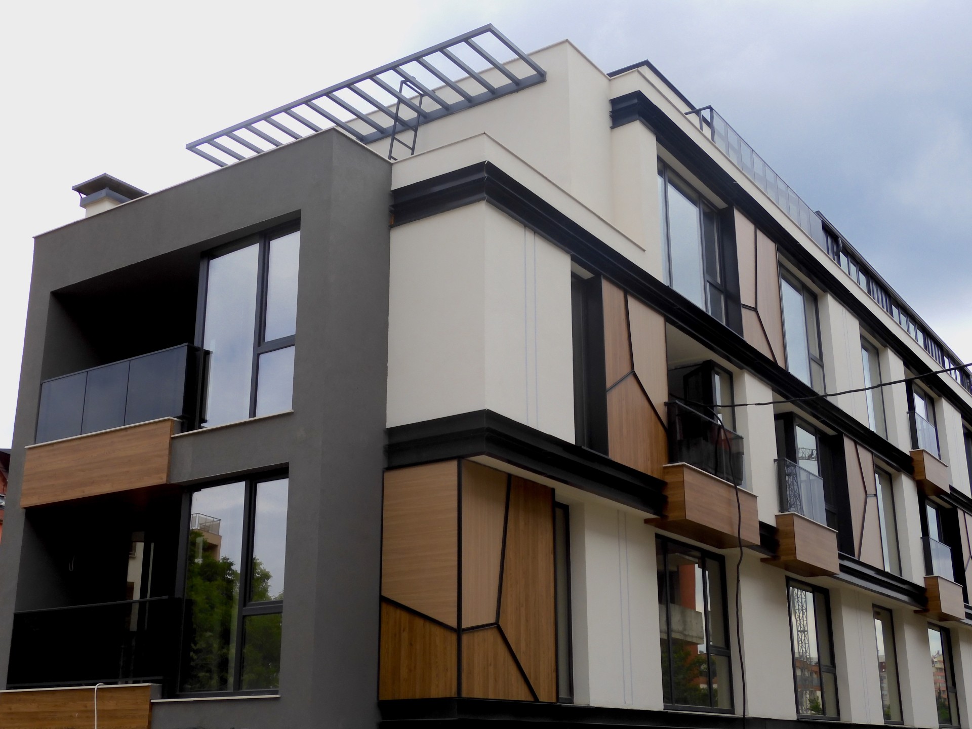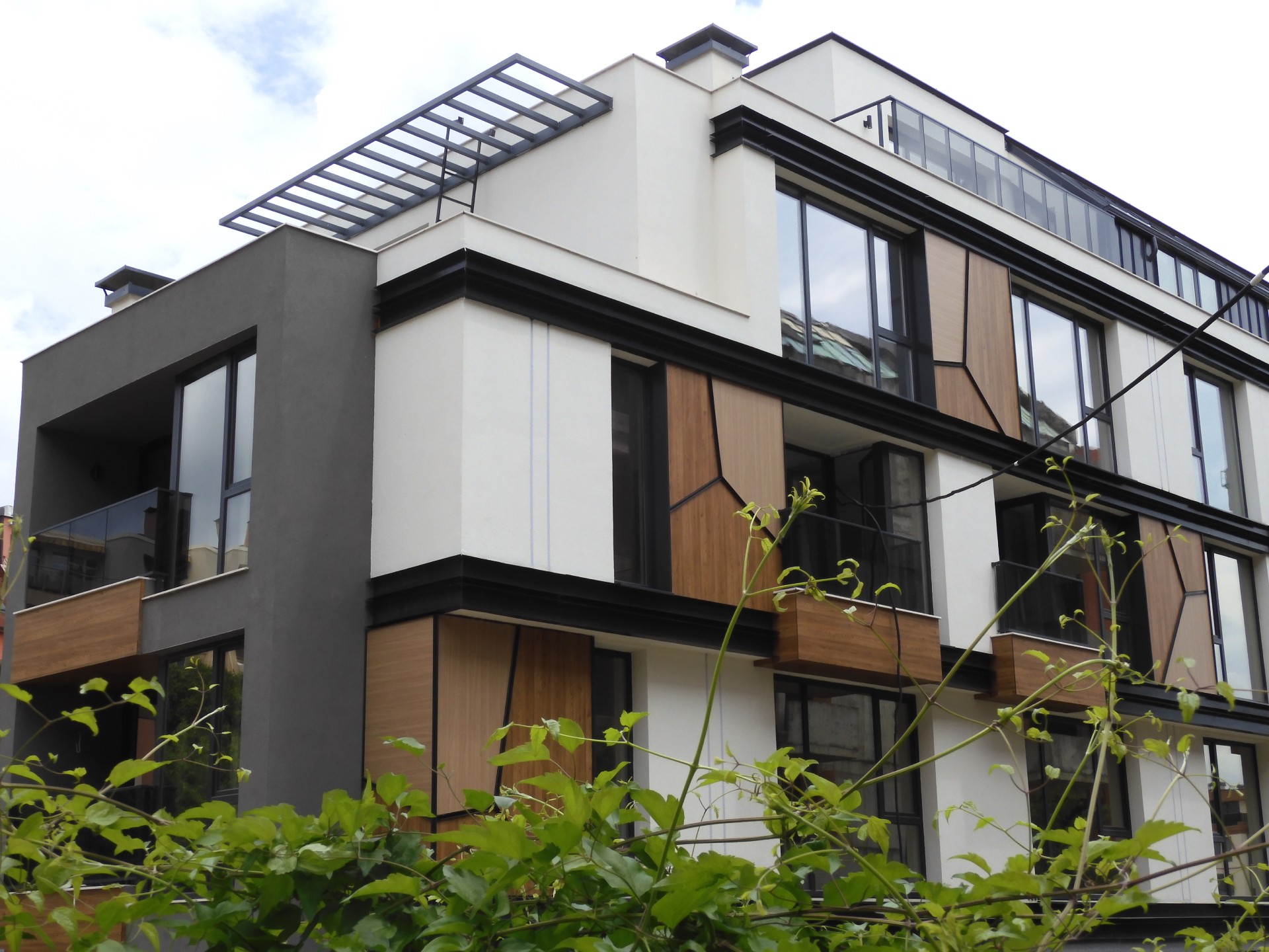 Сградата е със стилна архитектурна визия, съчетаваща фасада от силикатна мазилка, окачена фасада с HPL плоскости, френски прозорци - петкамерна дограма с троен стъклопакет и парапети от многопластово закалено стъкло. Апартаментите са само 13 и са разположени на разгъната застроена площ от 1236м2. Разпределенията могат да бъдат променени според желанието на клиента и допустимите конструктивни характеристики.